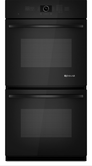 Jenn-Air® 27" Double Wall Oven JJW2527WB - Black 4.3-Inch Full Color Menu Jenn-Air® 27" Electric Double Built-In Oven with Upper Electronic controls with keypad entry include clock with timer Keep Warm(TM) option in upper and lower ovens DIMENSIONS Depth 27 7/16 Inches Height 50 1/4 Inches ... Content Retrieval